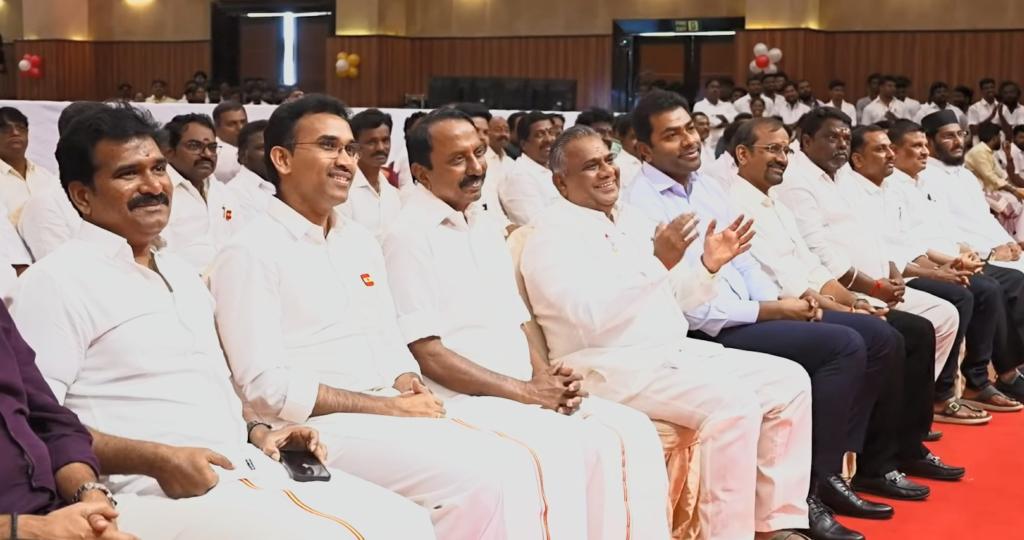 இந்த விழாவில் அரசியல் நோக்கர்கள் உற்று நோக்கிய ஒரு விஷயம், சமீபத்தில் அதிமுகவிலிருந்து விலகி தவெக-வில் இணைந்த கே.ஏ. செங்கோட்டையனின் இருப்பு. கட்சியின் ஒவ்வொரு முக்கிய நிகழ்விலும் விஜய்க்கு மிக அருகிலேயே அவர் தென்படுவது, தவெக-வில் அவரது முக்கியத்துவம் அதிகரித்து வருவதைக் காட்டுகிறது.